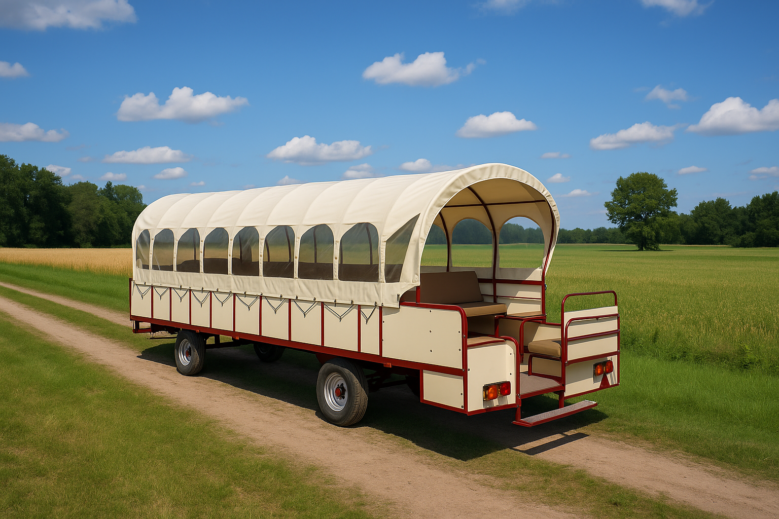 De panoramische huifkar voor de grote groepen.Coming soon!